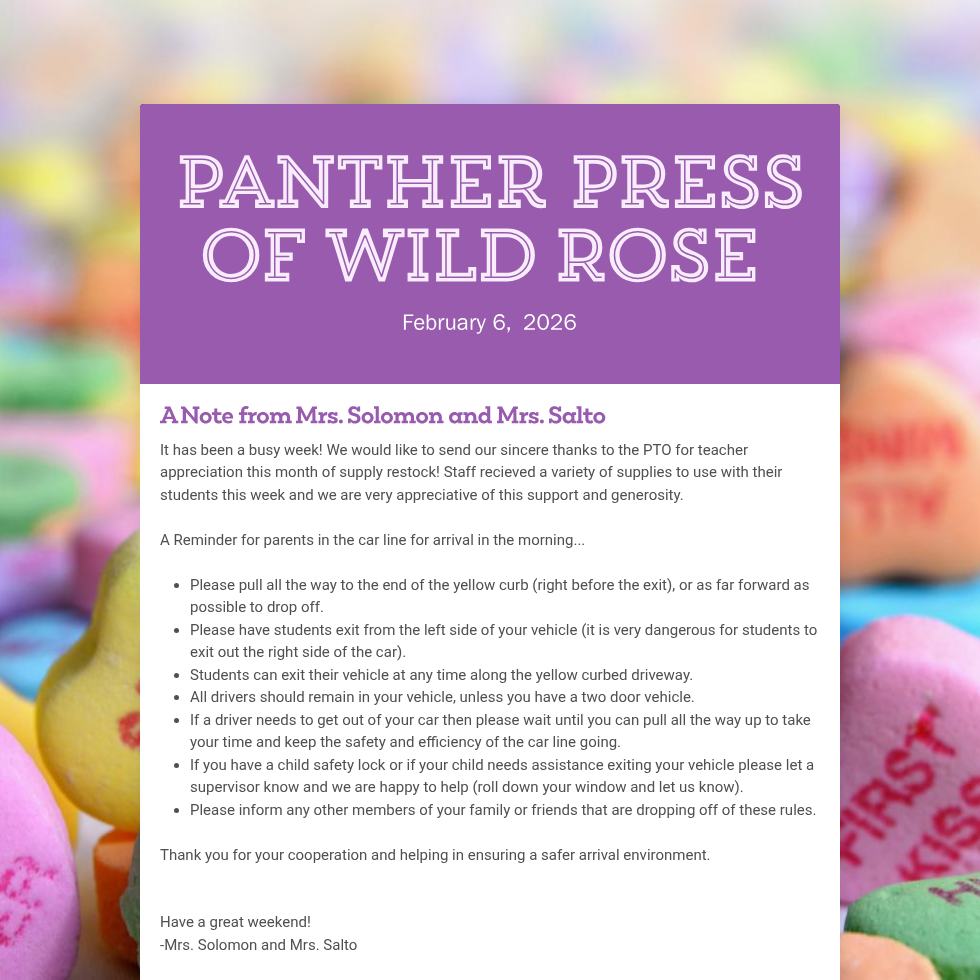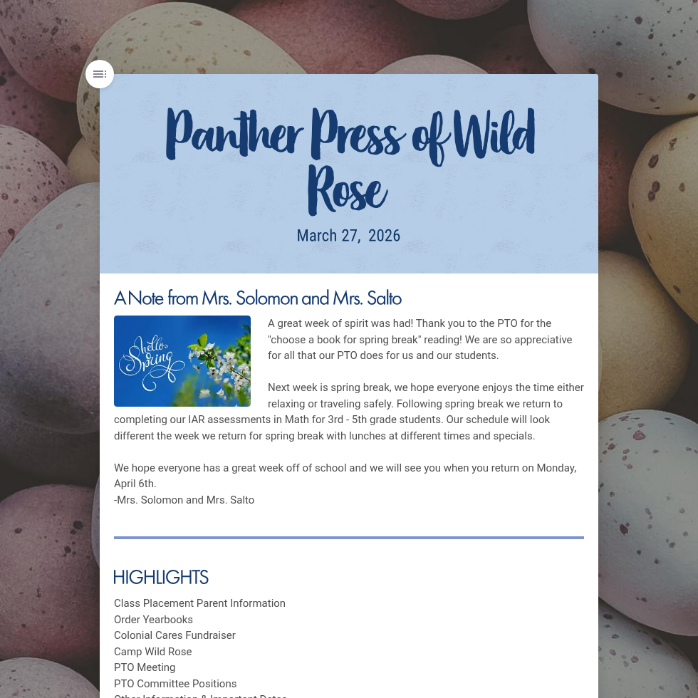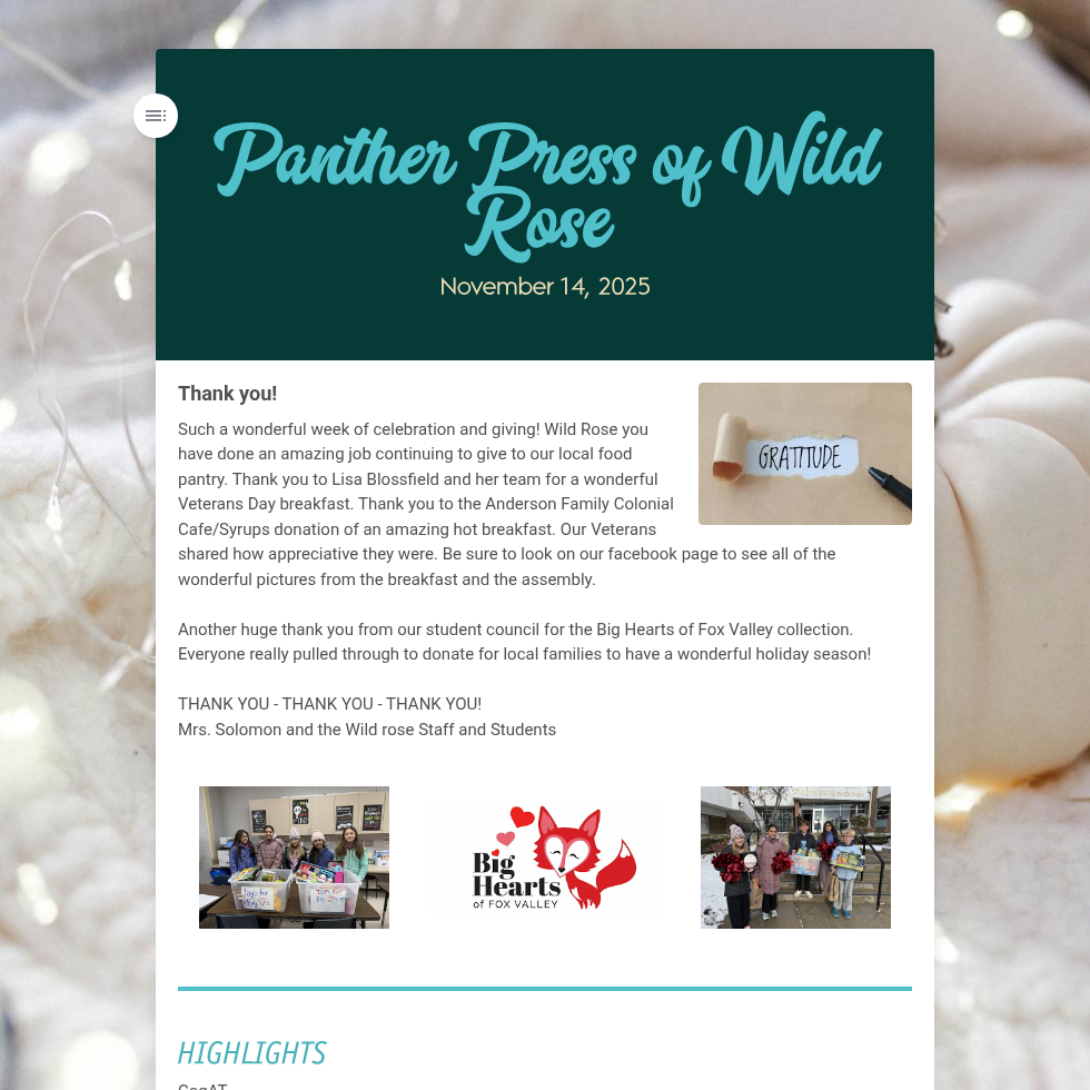 Newsletters are sent out via Finalsite